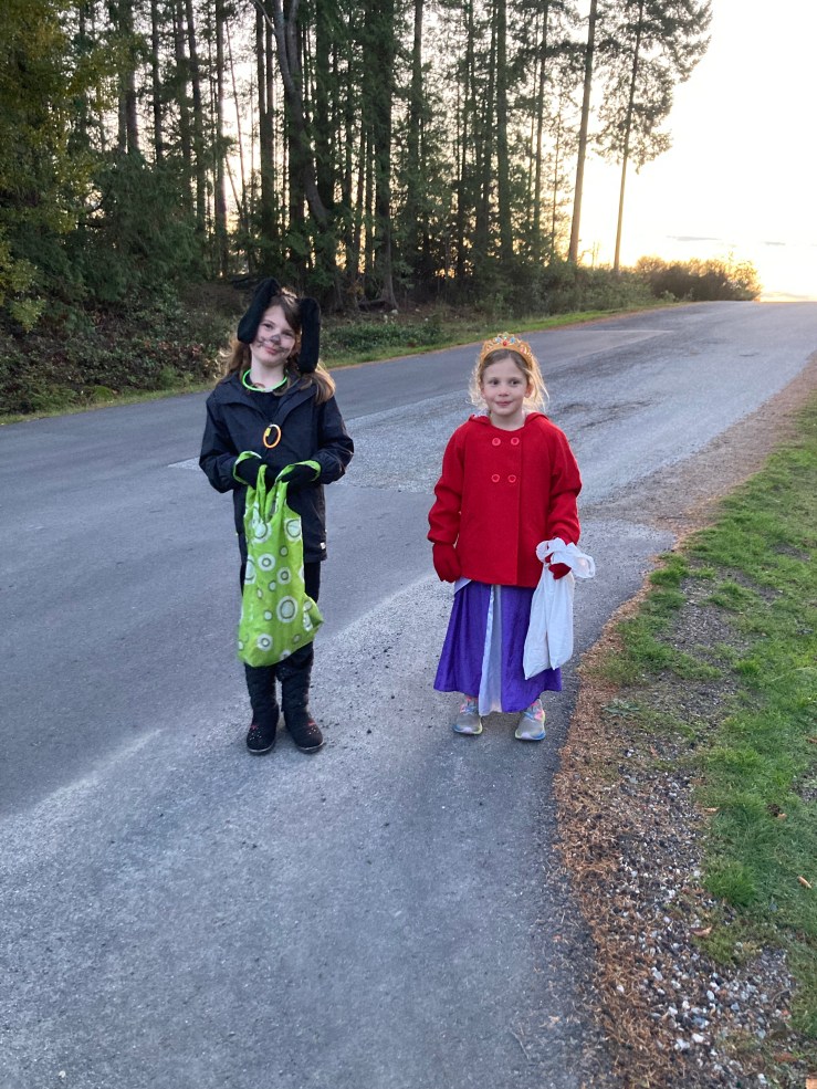 Pearl made her own costume and dressed as Winnie the Dog (as in our pet dog). Rose was Rapunzel. It’s Canada at the end of October so their costumes are obviously partially covered with coats. They had a blast trick-or-treating around our neighbourhood. I have mixed feelings about Halloween but every year I am amazed by how generous people are and the sense of community I feel taking my kids door to door.