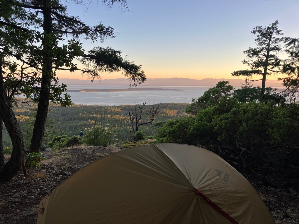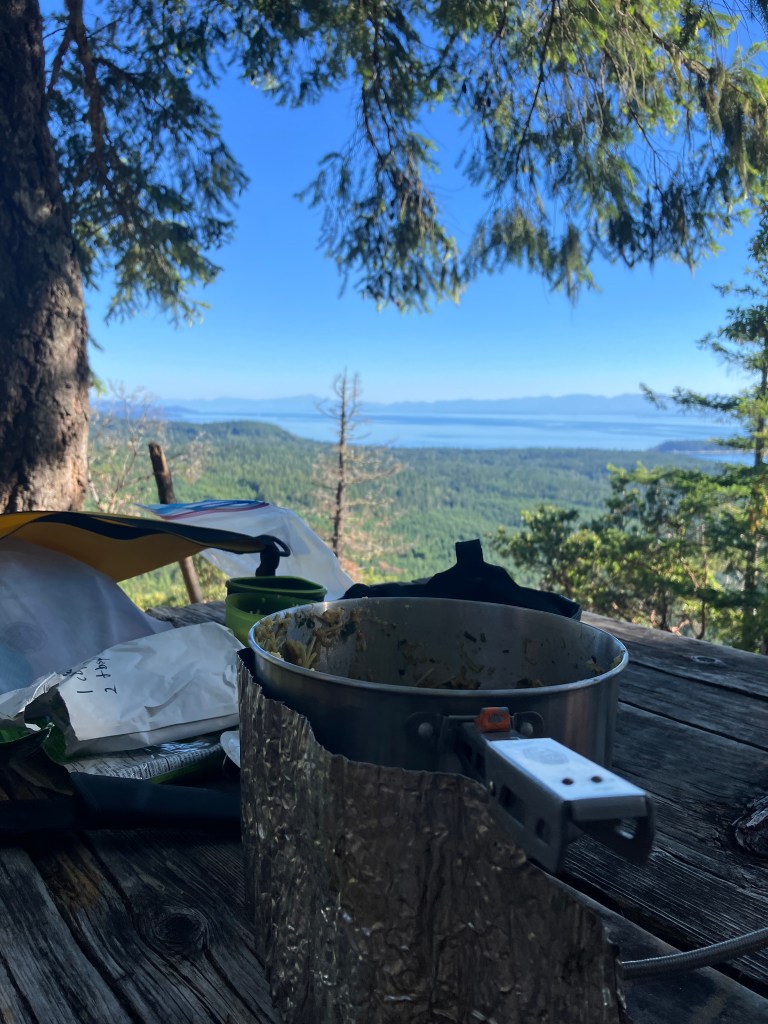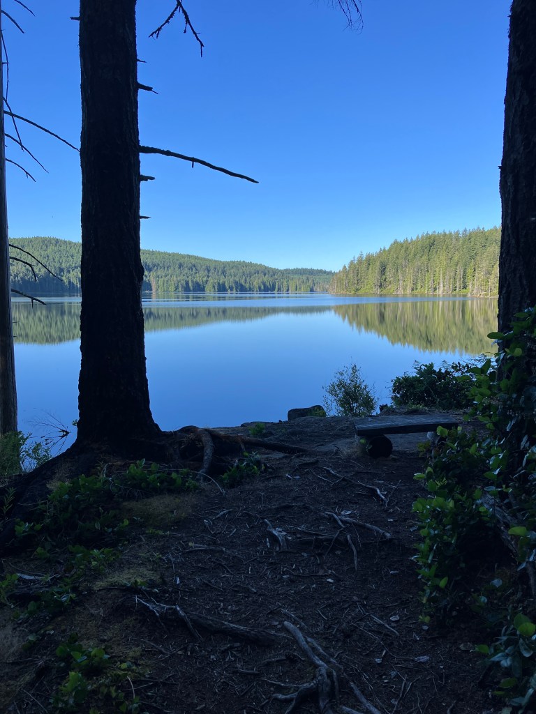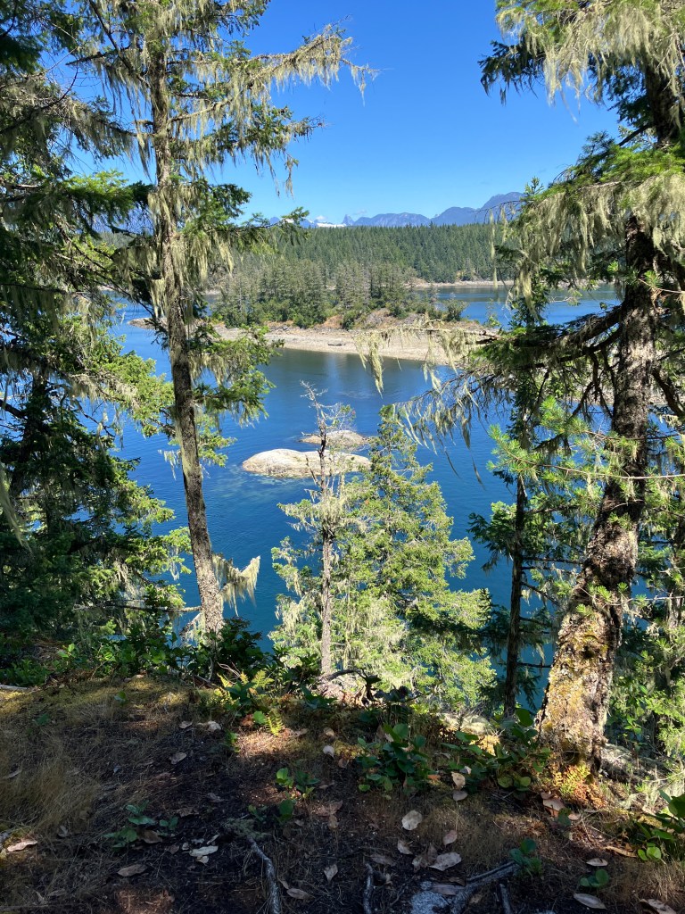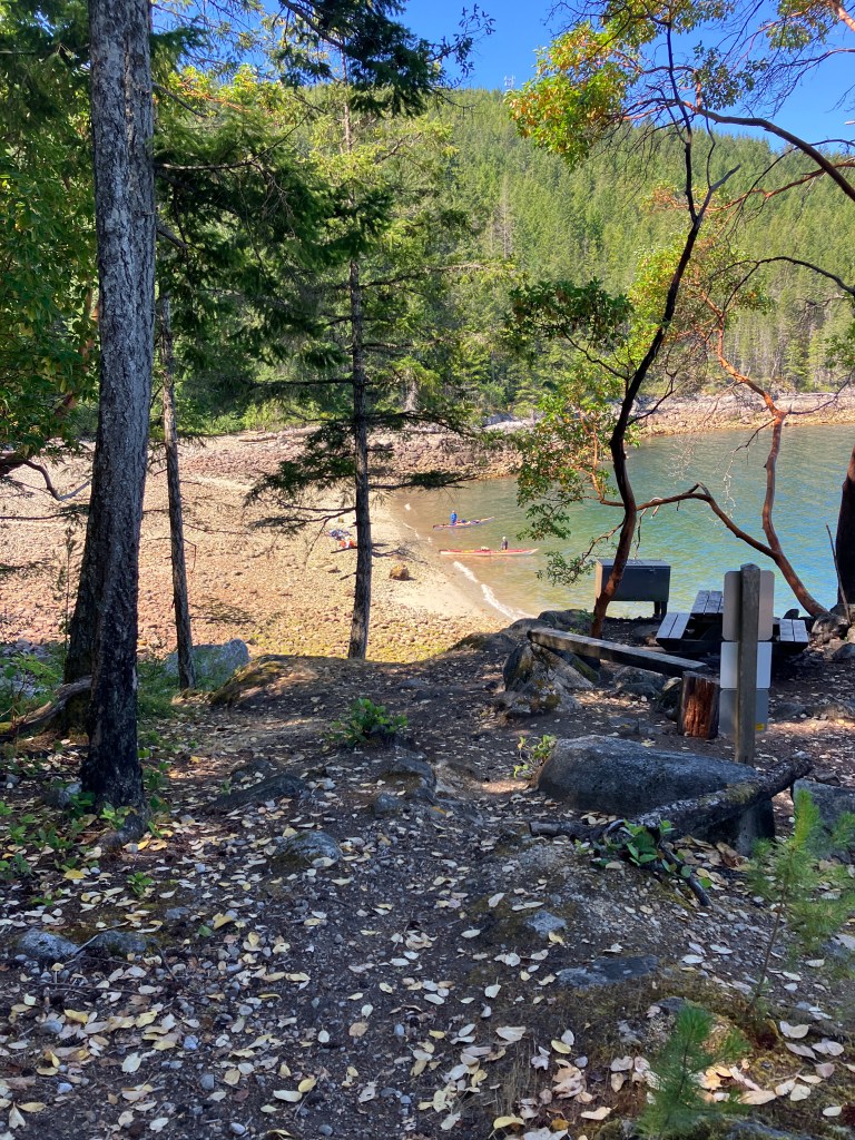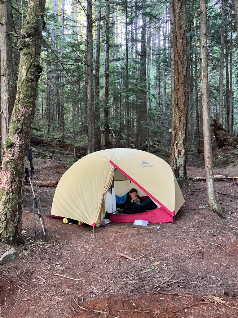 We were rewarded with a brilliant swim in Big Sliammon Lake. We pitched our tent, made a bear hang for our food, watched some Bluey on my phone, and swore that if any Australians (other than animated Blue Heelers) showed we would pack everything up and move on to the next site.