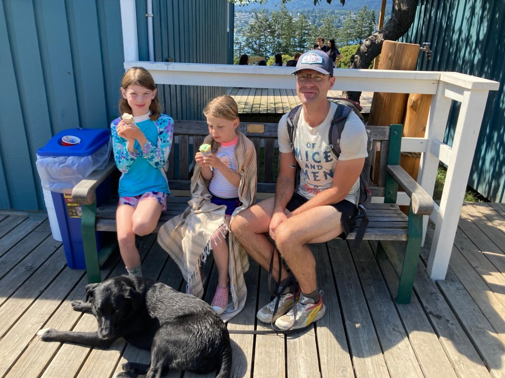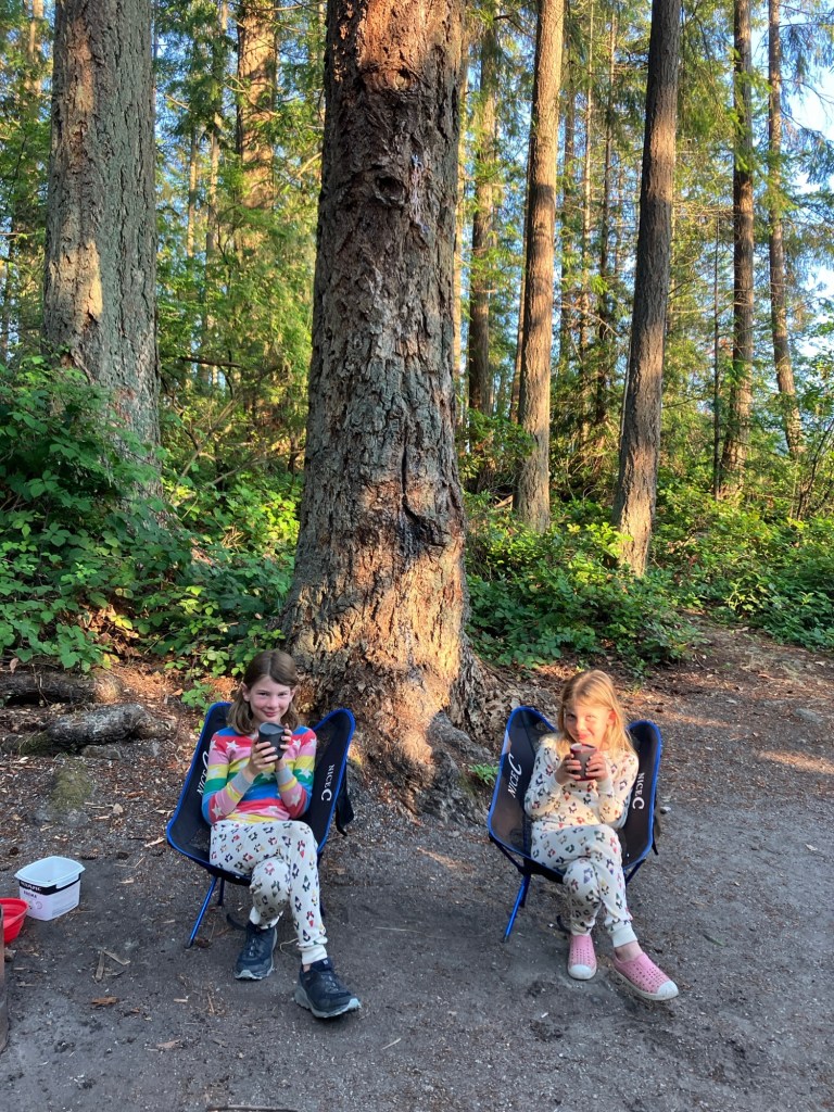 We camped for three nights this year and had initially planned to go from Sunday to Wednesday. We were all set to leave Sunday afternoon and so Sunday morning were dressed for church when Peter and I realized that both of the ice cream places on Keats Island were closed from Sunday to Wednesday. Hiking to get ice cream is a big feature of our time on Keats so we quickly decided to shift our week and leave on Wednesday instead. (In 2020, there was no ice cream due to Covid and it just wasn’t the same.)