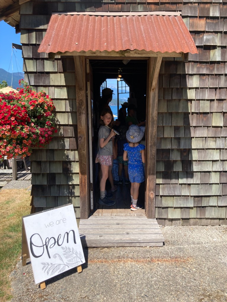 Thursday afternoon we hiked to Keats Landing. This is where the ferry from Gibsons docks as well as where Keats Camp is located. We swim near the public dock and then headed to Mariners Inn at Keats Camp for ice cream.
