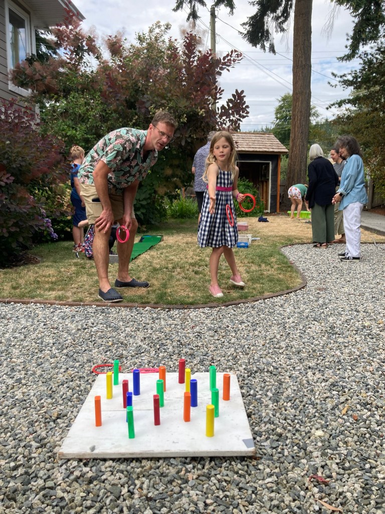 We finished out July with a lot of family time. We celebrated Peter’s dad’s 70th birthday with a family weekend which included four generations. We had yummy food and carnival games and almost all of the family were able to make it.
