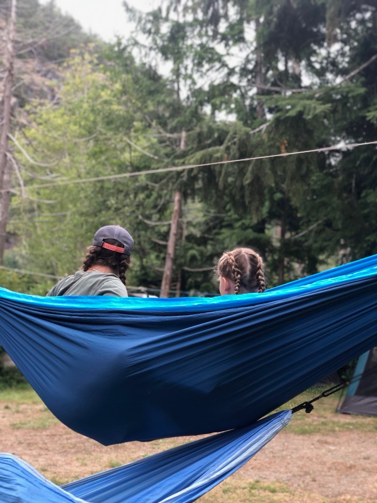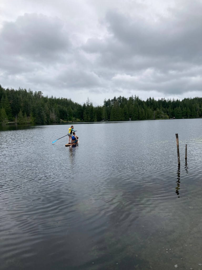 We then did 2 more nights together at a campsite on Hotel Lake, also here on the Coast. None of us had ever camped at this spot before but it had availability of 2 sites side by side over the precise dates that worked for all 9 of us so we opted to go for it. For Peter and I, who are used to kayaking and hiking into campsites, this was very deluxe camping. Every site had electricity! And drinkable water! The sites weren’t very private and it was fascinating to see the set-ups others brought. The campers next to us brought their slow cooker and I’m convinced one site had a mini fridge. It was very much a community vibe though with several of the campers returning year after year (One woman told us she’d been camping there for 50 years!) There was a musical jam night and a pancake breakfast.