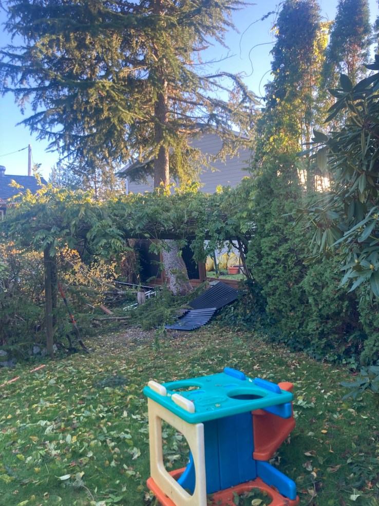 On Monday – this isn’t exactly a highlight – we had a huge weather event and the coast was hit with heavy rains, strong winds, and in some cases something most closely resembling a hurricane. Now, we don’t get hurricanes in our part of the country. I’ve never heard of it happening. But the winds that whipped through our neighbourhood on Monday were crazy strong and weirdly localized. Most of the Coast lost power in the morning and some places didn’t get it back on until yesterday. The highway was closed in two parts on Monday and so many trees were down all over the place. We lost part of our fence and one tree but are very fortunate. Some huge branches came down in our yard that could have caused a lot more damage and other homes in our neighbourhood were much more badly damaged when trees came down on them.