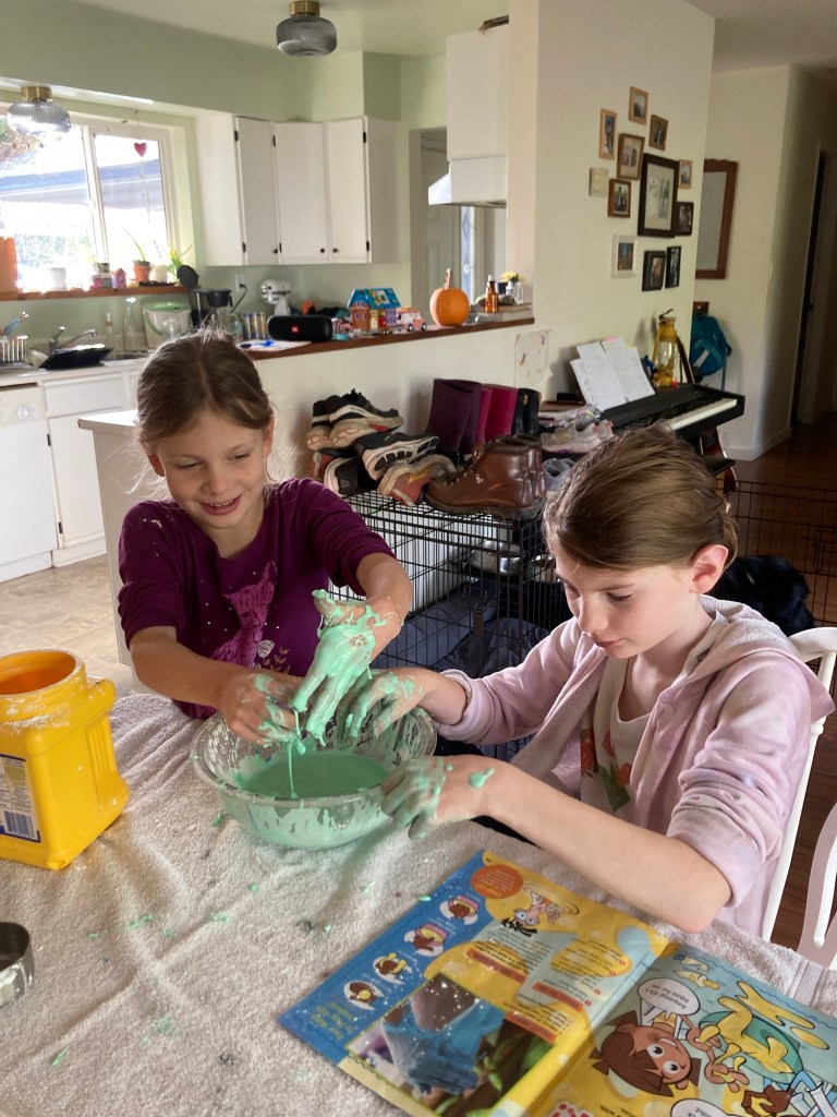 Oobleck is so weird! I’d never seen it until last year. It’s a good rainy day activity. We’ve had lots of rain here but a couple of sunny days. There was one last week on my day off and I took the dog for a long walk and it felt so good. I walk a lot – either taking the kids to school or going to work and it does make a big difference in how I feel, both physically and emotionally. In the dark afternoons and evenings, lighting has become very important to me.