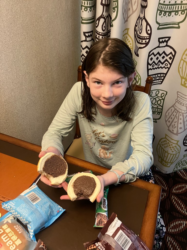 After a morning swim once the pool opened for the season, we checked out of the Explorer Lodge. Our flight left that evening so we had a good chunk of the day to still be in the city. We gave Pearl and Rose some options and in the end they chose to go back to Mongkok and revisit some of our favourite spots. The Dorsett Mongkok kindly allowed us to stash our bags there and we spent an afternoon walking around, visiting the park with the koi and turtles, and stocking up at our favourite bakery.