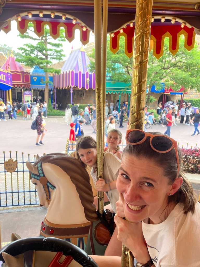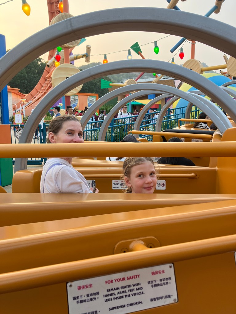 On our second day at Disney, we got more strategic. We aimed for busier rides at the beginning of the day when we knew lines would be shorter. We also made good use of the Disneyland Hong Kong app, which tells you in real time how long waits are at various spots. We split up a couple of times in order for the girls to go on the rides they wanted (and once so that Peter didn’t have to re-ride one that made him nauseous).