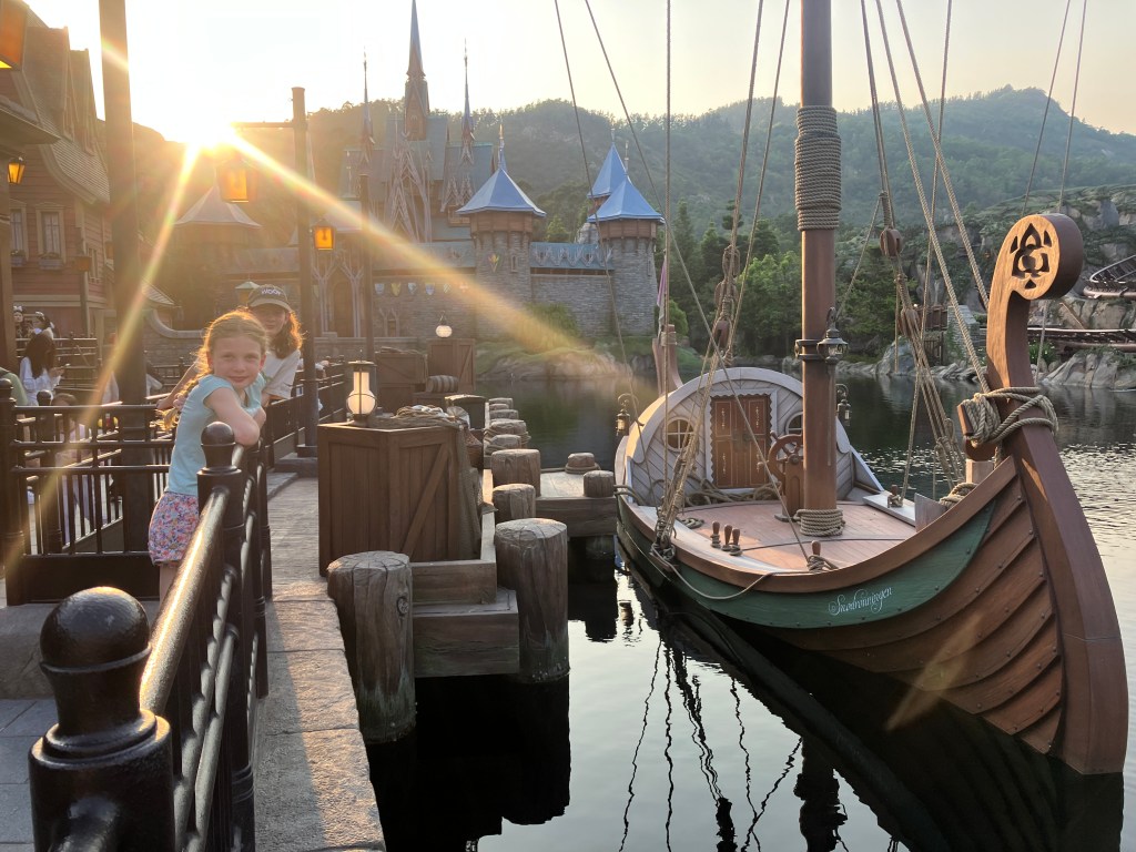 We actually had a lot of fun trying out the different ramens and rating them. The next day, while the girls and I had a rest time, Peter went further afield and took another MTR to find a grocery store. There he was able to stock up on sandwiches, onigiri, fruit, yogurt, drinks, and baked goods. With that, we took food into the park with us and snacked and ate as we chose. (There was a nice, covered picnic area near to the Arendelle Castle.)